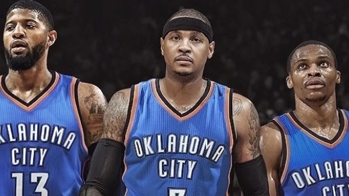 Westbrook-Anthony-George (Thunder): LeBron James formó parte en Miami y Cleveland de los tridentes de mayor peso mediático entre 2010 y la primavera pasada; sin embargo, dicho honor recae ahora en el MVP de la última temporada, Russell Westbrook, quien contará con los estelares aleros Carmelo Anthony y Paul George, ambos traspasados en septiembre desde Nueva York e Indiana, en pro de hacer del Oklahoma City Thunder el gran rival de los Warriors en el Oeste.