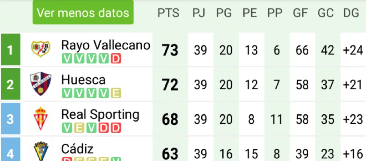 1. Rayo Vallecano-73 puntos-