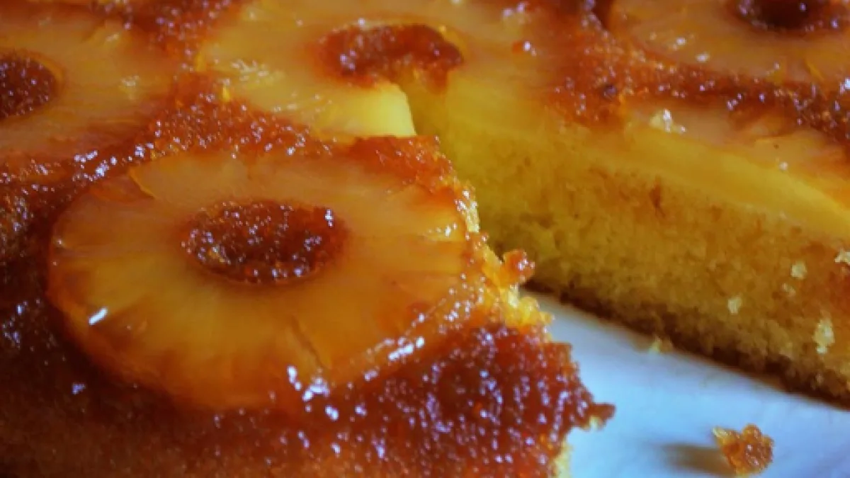 Una vez tenemos todo preparado pasamos a hornearlo, tras haber precalentado el horno a 180º C lo dejaremos dentro aproximadamente unos treinta y cinco minutos. Cuando este hecho lo retiraremos y le daremos la vuelta sobre el plato a servir, provocando así que quede la piña arriba. Opcionalmente podemos añadir gelatina para postres sobre la superficie para darle una mejor textura y que parezca más jugoso.