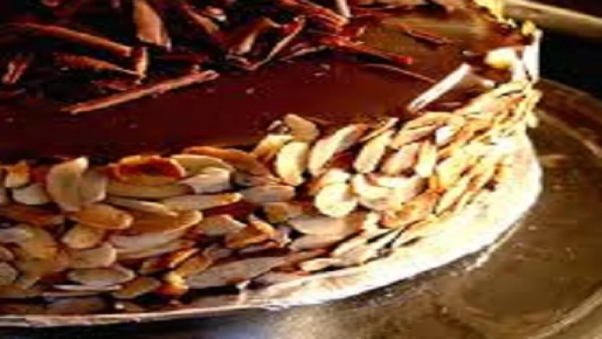 Servir al gusto acompañando la tarta de chocolate con almendras, que para los amantes del chocolate esta combinación de lo dulce y amargo del chocolate, junto con lo crujiente y nutritivo de la almendra hace que sea un manjar de dioses.