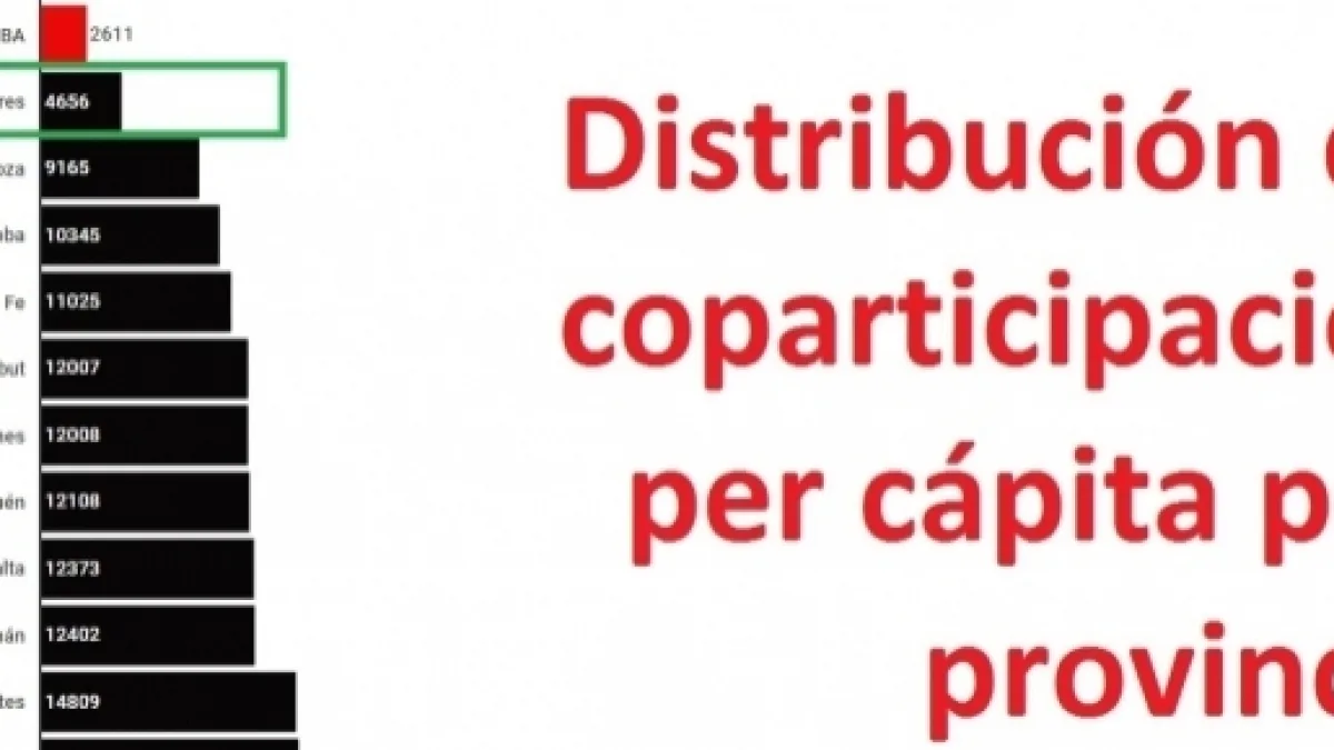 Además la provincia de Buenos Aires, que produce el 36% de riqueza nacional y además tiene el 38,8% de la población argentina, solo recibe un 18% en concepto de coparticipación, aproximadamente $5 mil por habitante mientras el promedio por provincia es de $20 mil.
