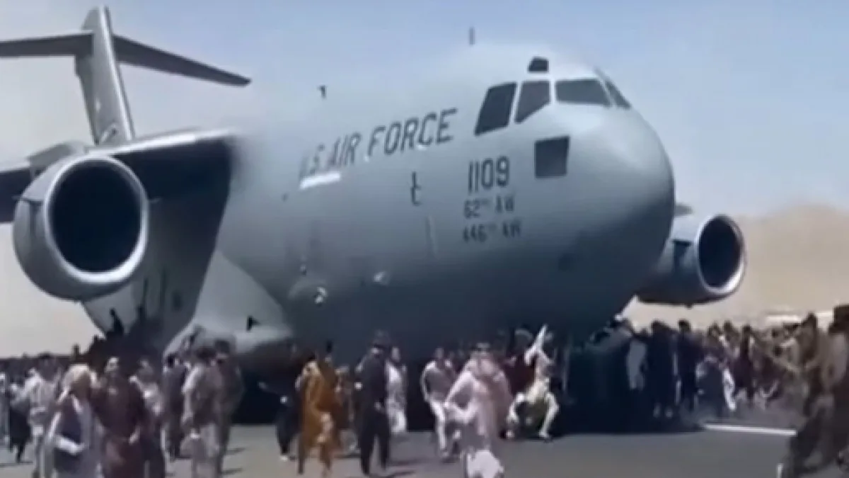 Las personas que intentaron escapar y las que lograron huir en el avión militar de Estados Unidos generaron un increíble caos en el aeropuerto de Kabul. Aproximadamente 640 personas salieron de Afganistán en la bodega de carga de un avión militar enviado por Estados Unidos, fue en extremo riesgo ya que varios de los civiles pudieron entrar al Air Force C-17 por la puerta de carga semiabierta mientras el avión despegaba.