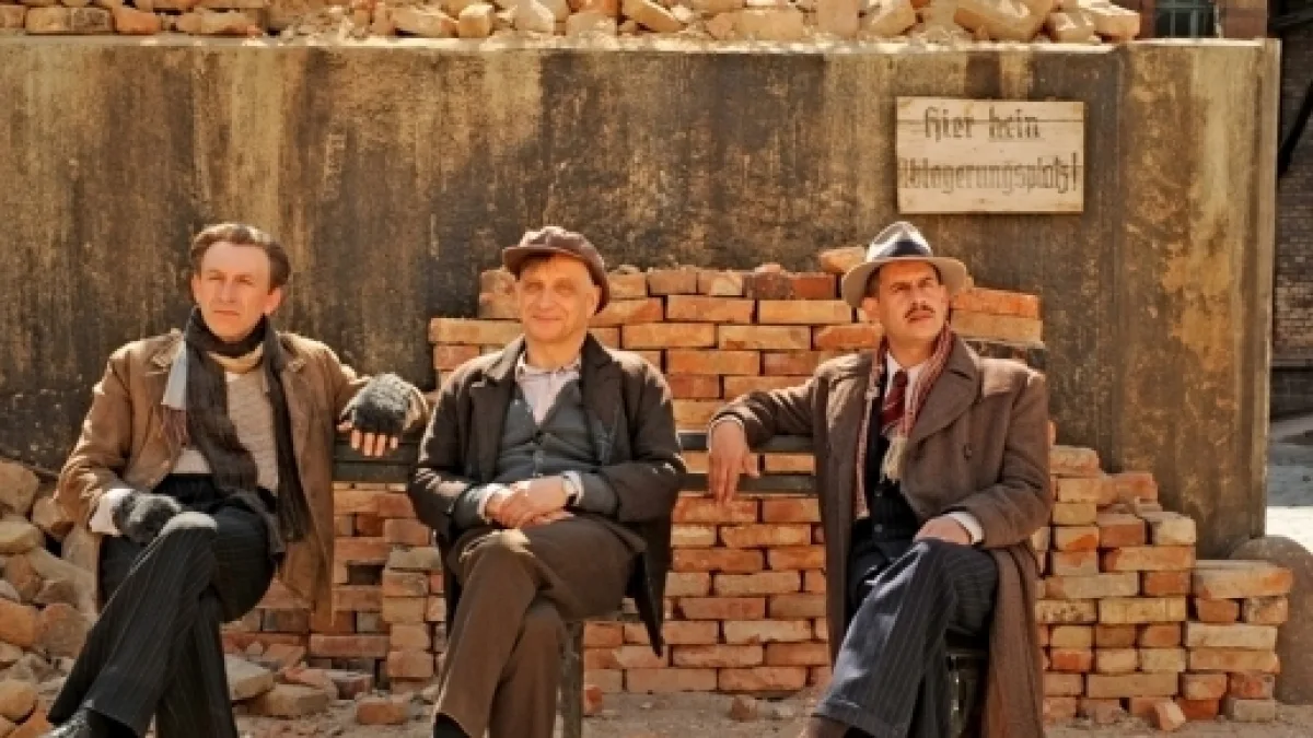 No hay historia si no hay relato, no hay individuo si no hay una imagen de él, no hay pueblo sin mito. Volviendo al inicio del relato, o de este texto, Bye Bye Alemania, centrado en la figura de su principal personaje David Bergman (Moritz Bleibtreu), es una claro ejemplo de la construcción de los cuentos, de la reconstrucción de su vida, su supervivencia. Al igual que el pueblo judío, se basa en la capacidad de construir historias, relatos, fantasías, imaginaciones... reales o no, peo interesantes de la propia existencia, para así, ser, de la forma más hábil, ser. Una frase final del personaje... “hay que maquillar un poco la vida...” o esta otra.. “Sin chistes estaría muerto”. Un film de cuentos sobre nuestra propia vida, para darla algún sentido, con un interesante guión y con algunos descubrimientos, pocos... en la narrativa de sus imágenes y su simbología.
