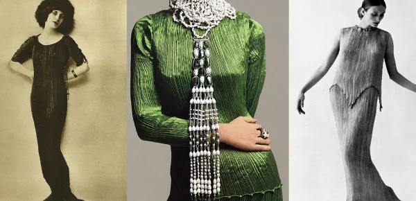 En 1909, Mariano Fortuny, pintor, escenógrafo y diseñador diseñó junto a su mujer Henriette, un vestido que no solo fue deseado por todas las damas de la alta sociedad, sino que se convirtió en un icono del mundo de la moda. Su inspiración fue la estatua griega del Auriga de Delfos (476 a.C.). Se trata de un vestido realizado en tela de seda con diminutos plisados, es recto y cae desde los hombros.
