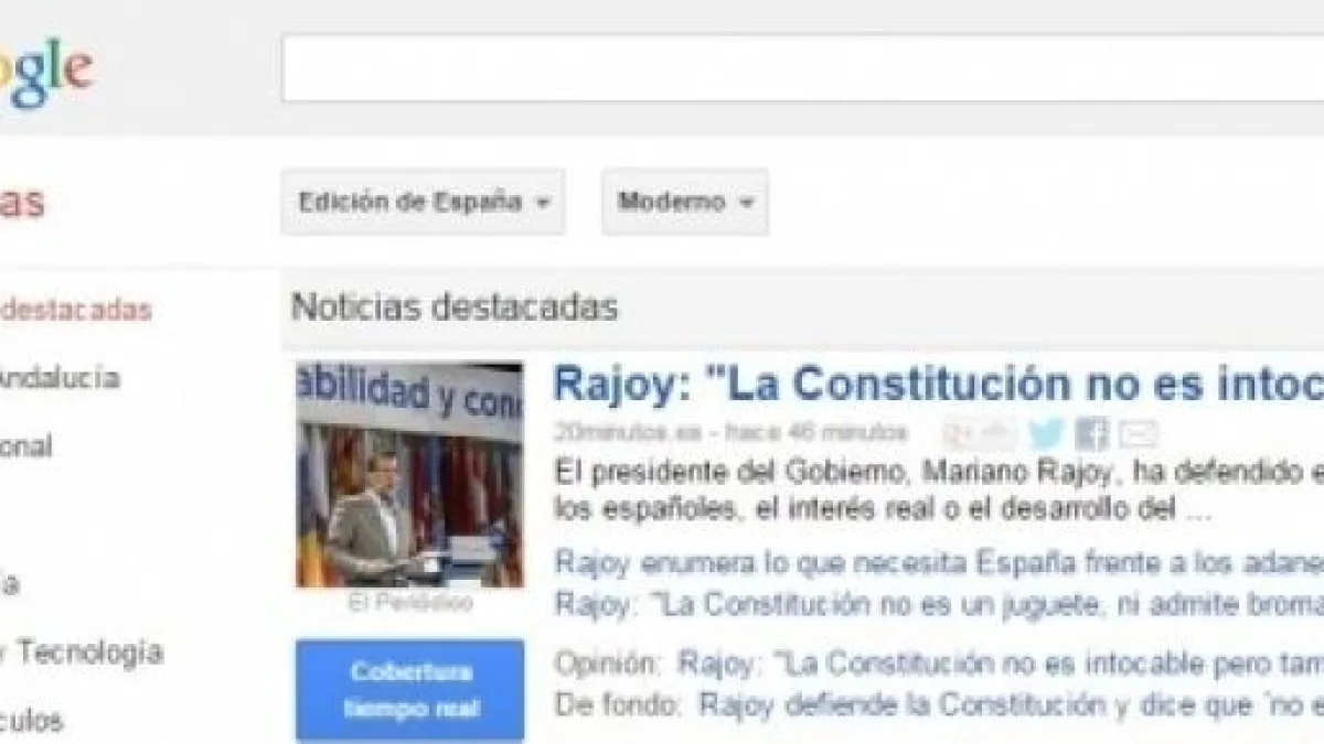 Google News España cerrará. La nueva Ley de Propiedad Intelectual de España obliga a Google News y otros agregadores de noticias a pagar por los contenidos que aparezcan en ellos. Desde un punto de vista jurídico, se trata de la ley más restrictiva de Europa a este respecto. Pero independientemente de lo restrictiva que es, tiene también otra característica que la hace también absurda: en realidad Google ofrece un servicio a los medios que aparecen en Google News.