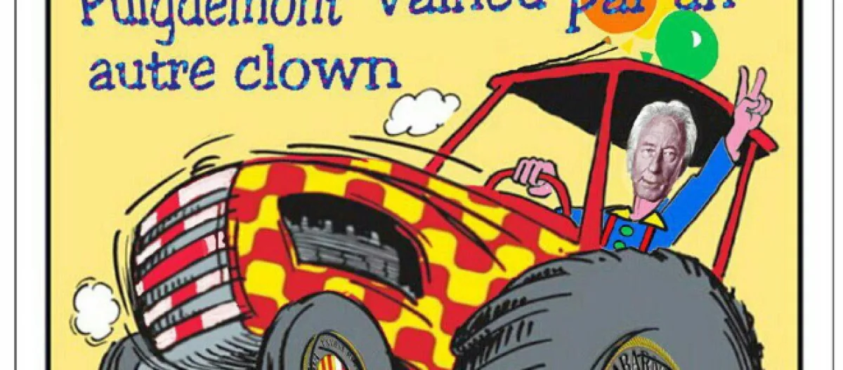 Puigdemont aparece con barretina catalana. El titular es “Puigdemont, vencido por otro payaso”.
