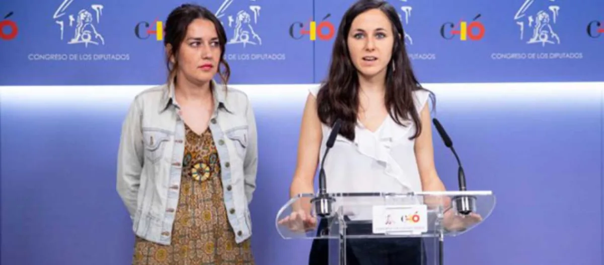 La portavoz adjunta del partido Podemos, Ione Belarra, junto a Sofía Castañón, secretaria de Feminismos Interseccional y LGTBI de Podemos; Ángela Rodríguez (En Marea), Alicia Ramos (En Comú Podem); y Eva García (IU), junto a Patricia Faraldo, catedrática de Derecho Penal de la Universidad de La Coruña, informaron que el partido Unidos Podemos ha registrado este miércoles ante el Congreso de los Diputados, una moción para reformar el Código Penal.