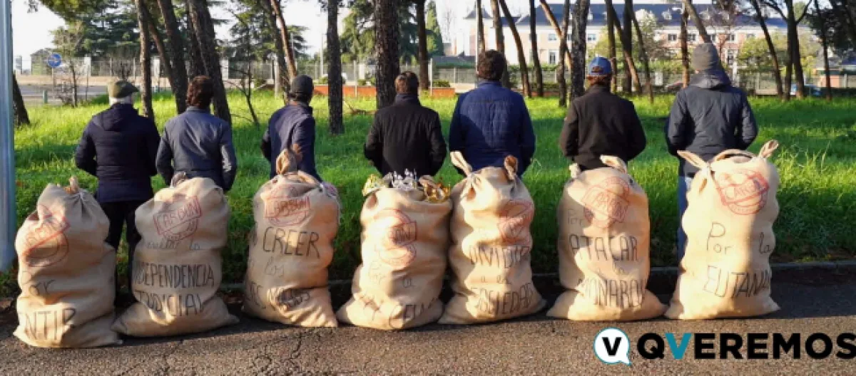 'Qveremos' en cada uno de los siete sacos han declarado un reproche al Ejecutivo español, el primero de ellos cuestiona la gestión de la pandemia por parte del Gobierno del PSOE, y que según ellos se han falseado los datos del coronavirus, así como se han ocultado el número de fallecidos de la pandemia.