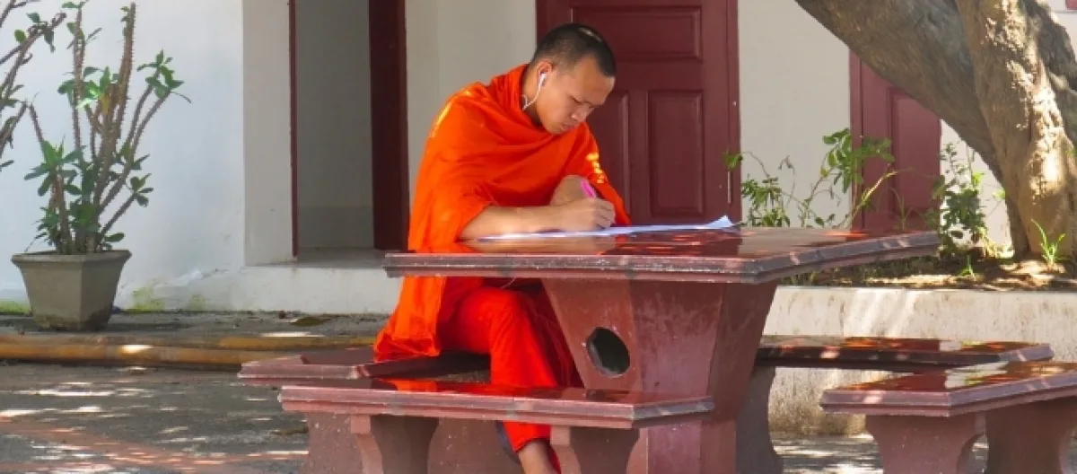 Es la pieza central de la rutina cotidiana estricta emprendida por cientos de novicios provenientes de aldeas pobres y rurales a los antiguos templos esparcidos por la ciudad. Muchos van a recibir una educación que se les niega en las escuelas masificadas y sin fondos suficientes de sus aldeas.
