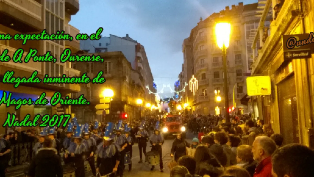Como en el resto de la geografía gallega, en Ourense había temores de una lluvia intempestiva que desluciese la tradicional Cabalgata de Reyes. Aunque no todos eran de esa opinión. Una anécdota lo explica mejor que otras palabras. Y es que, justo el día anterior, dos amigos iban por el barrio de A Ponte y uno le decía rotundamente al otro: Te aseguro que mañana por la tarde no llueve.