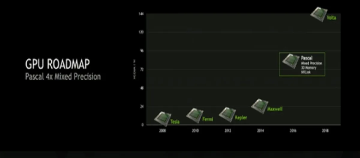 El director ejecutivo en una conferencia dejo bien claro que la arquitectura Pascal va a aumentar por 3 el rendimiento de generación Maxwell, siendo así graficas con menos consumo energético con un desempeño del 300%.