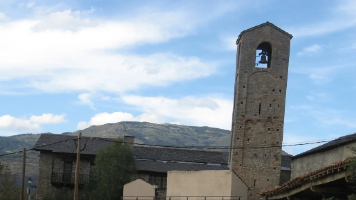 La conocida como Torre de Pisa de la Cerdaña dentro de sus peculiaridades cuenta con ser el único campanario románico que queda en pie dentro de la comarca, el mismo se compone de una torre cuadrada de 3.40 por cada lado, sus cuatro niveles se dividen con el de la base, que es liso, en cambio tres arcos de estilo lombardo decoran su segundo nivel, una ventana de aspillera y un gran arco ciego componen el tercer cuerpo de la torre mientras que el cuarto nivel presenta una ventana de arco de punto medio en cada cara.